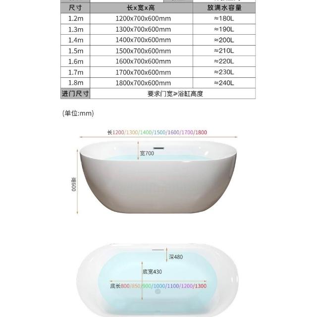 [破損包賠]保溫 亞克力 薄邊 無縫浴缸 家用 成人獨立式 歐式 貴妃 浴缸
