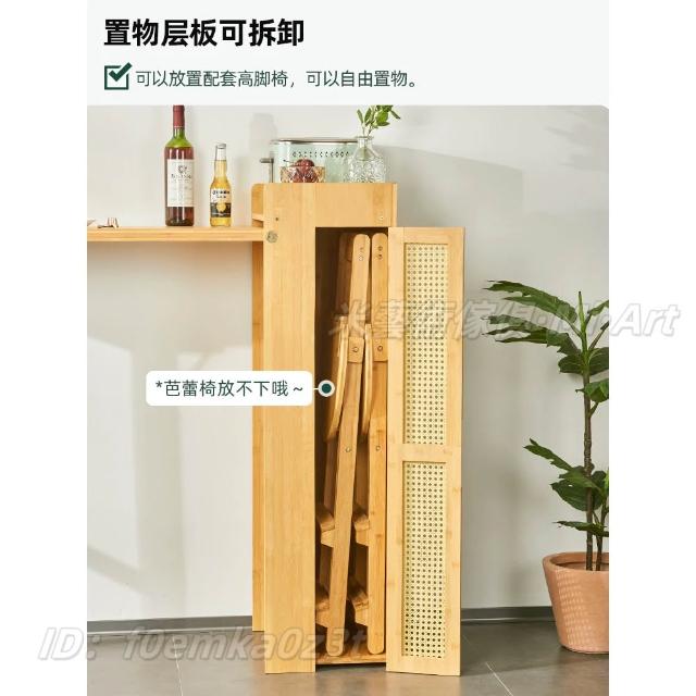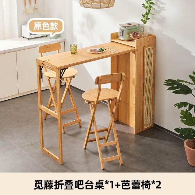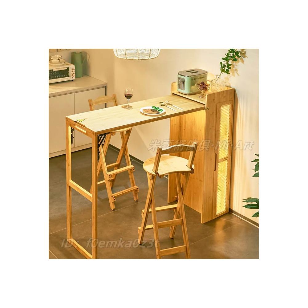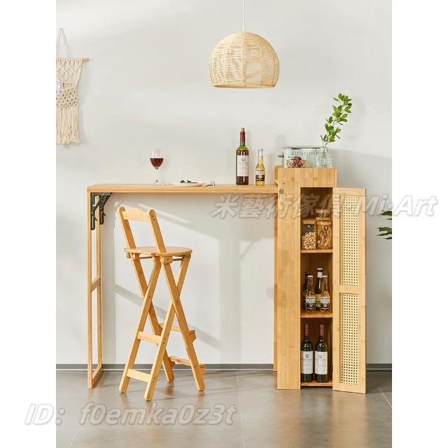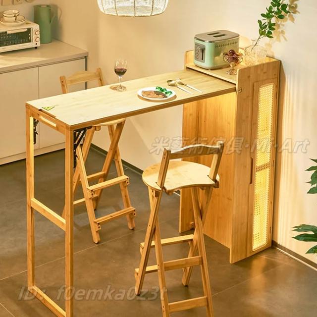 免安裝吧檯桌 餐桌 儲物桌 咖啡桌 邊桌 吧檯椅 日式實木折疊吧臺桌 藤編餐邊櫃 一體家用隔斷多功能餐桌 可伸縮島臺