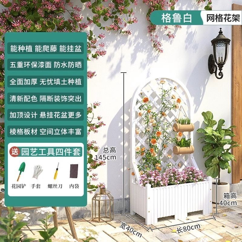 [新品免運]戶外庭院 防腐木 花架陽臺 落地網格 爬藤架 網紅裝飾室外 高端隔斷花箱
