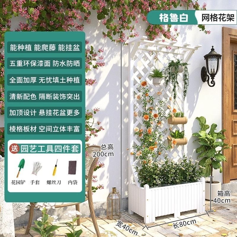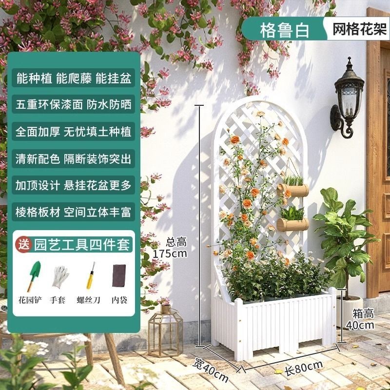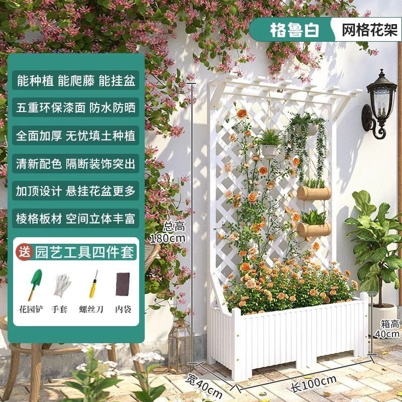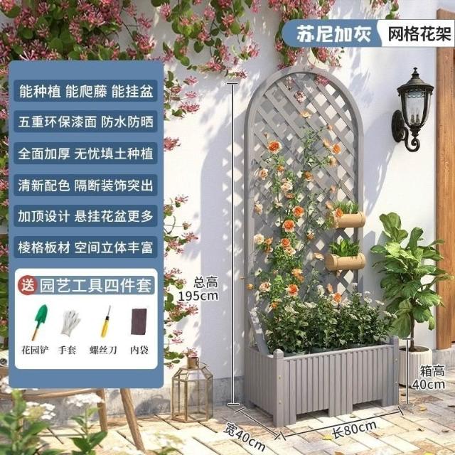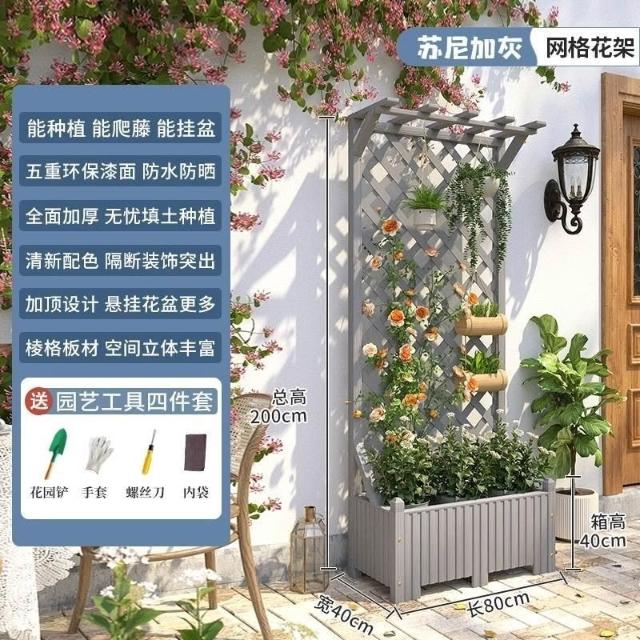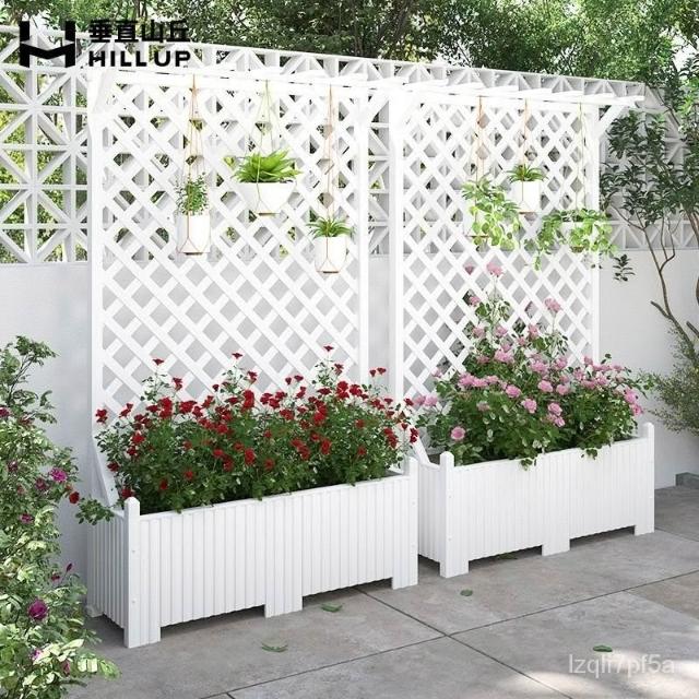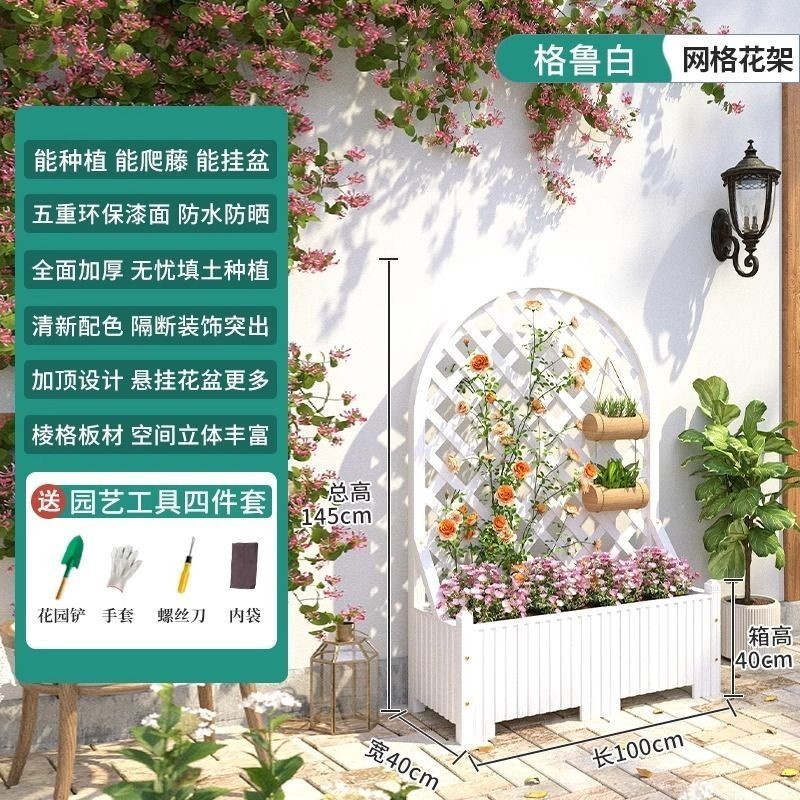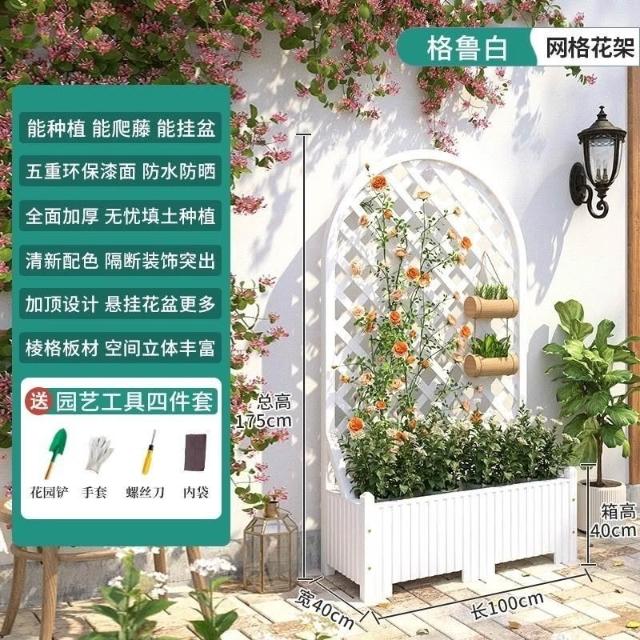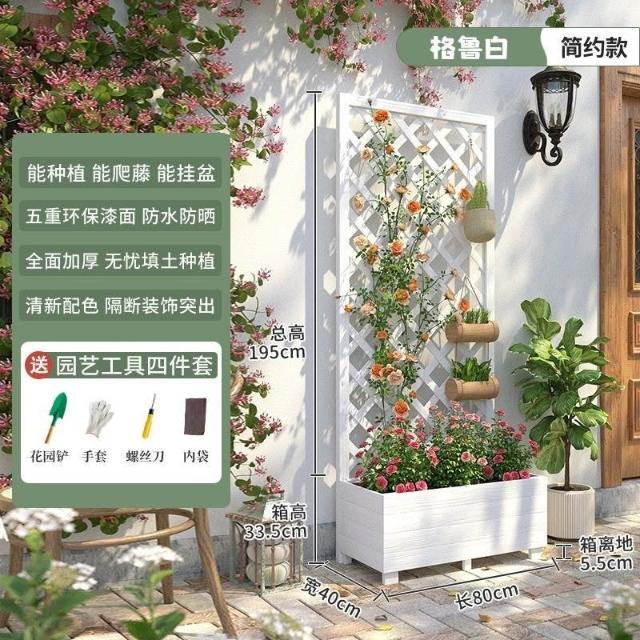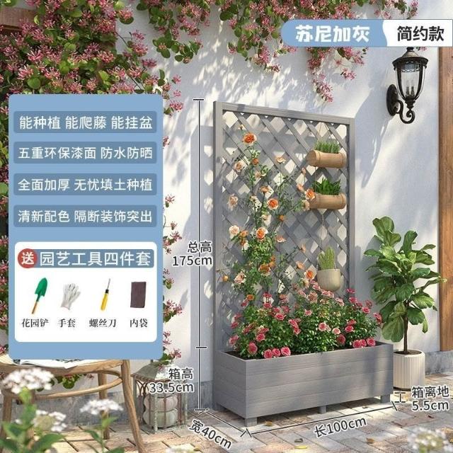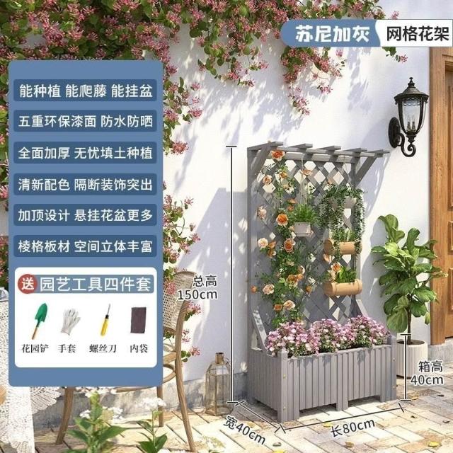 [新品免運]戶外庭院 防腐木 花架陽臺 落地網格 爬藤架 網紅裝飾室外 高端隔斷花箱