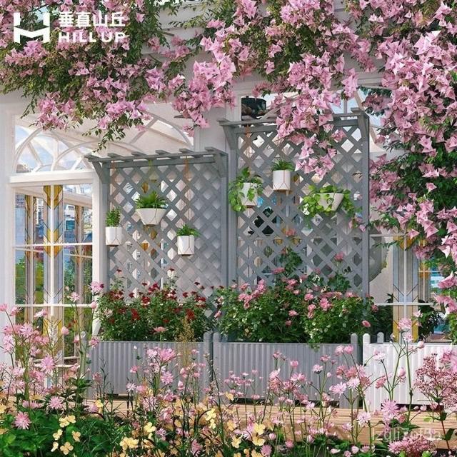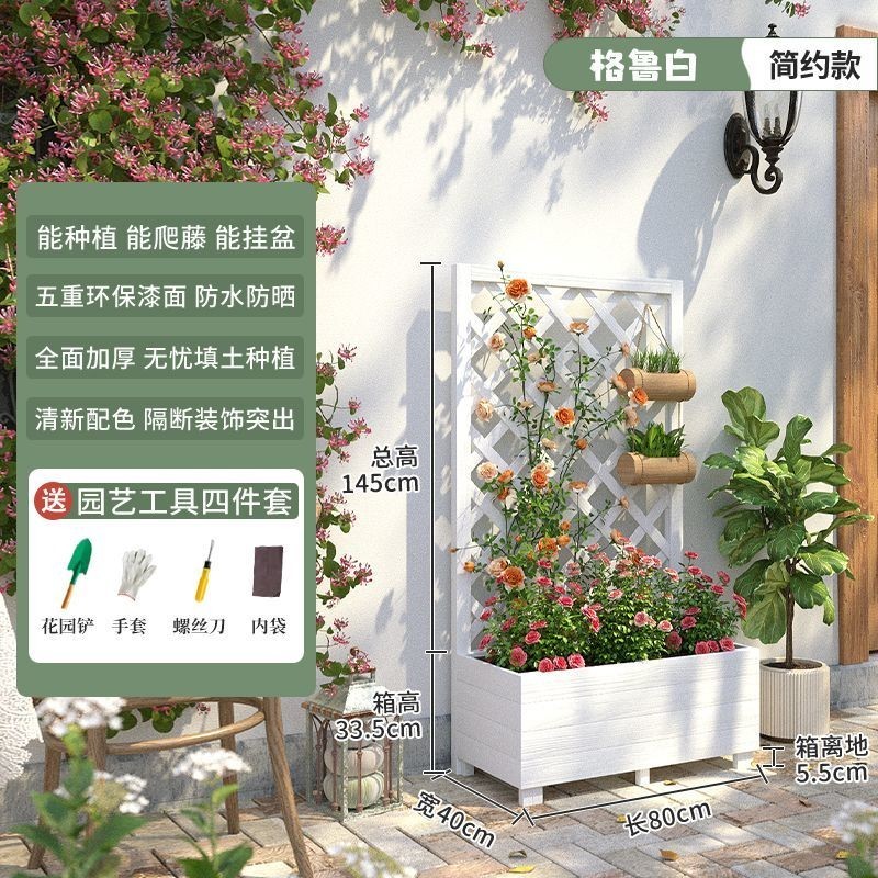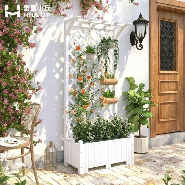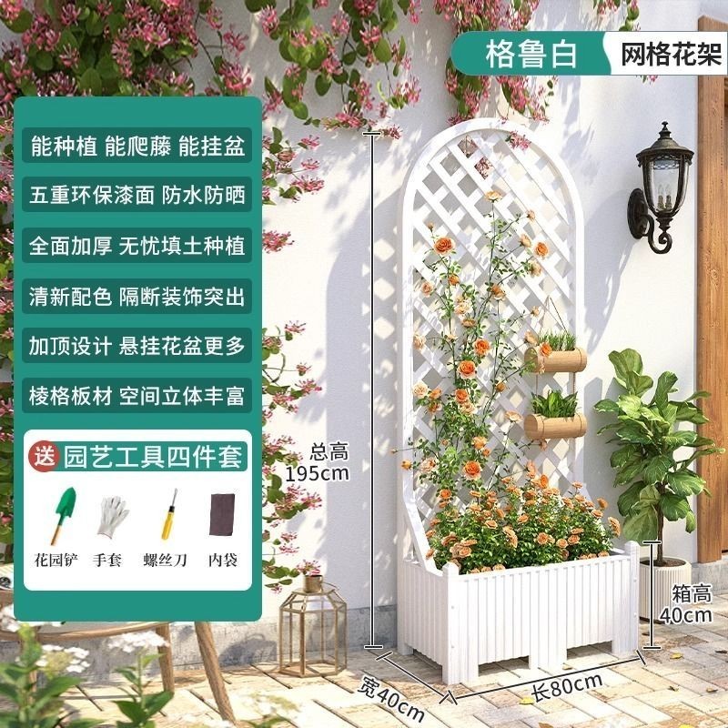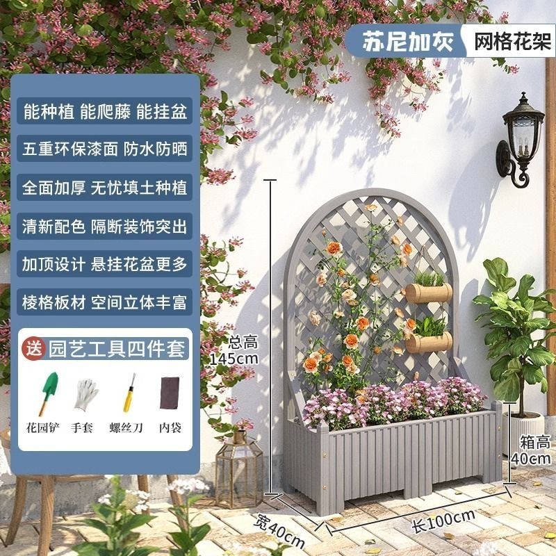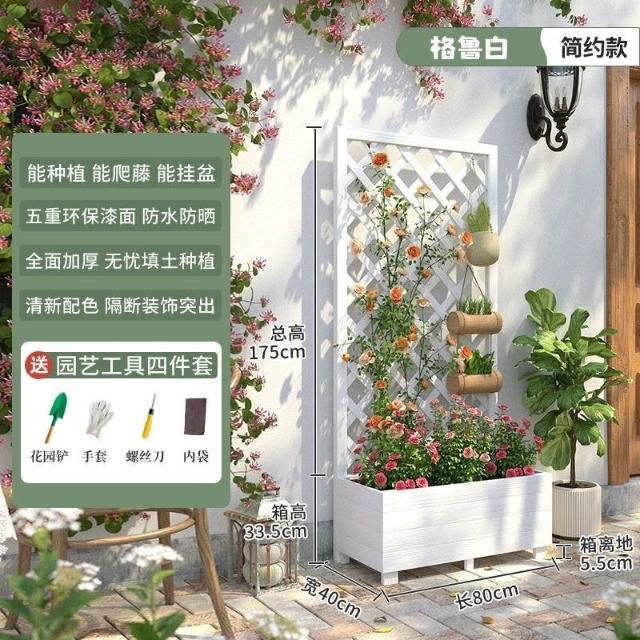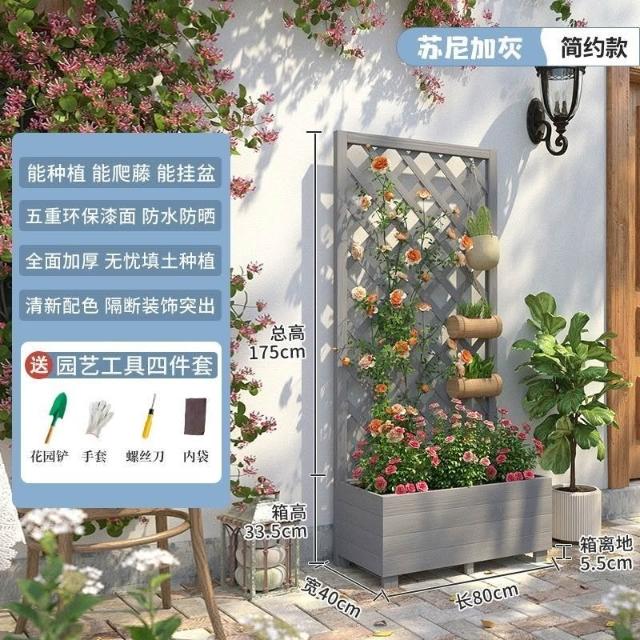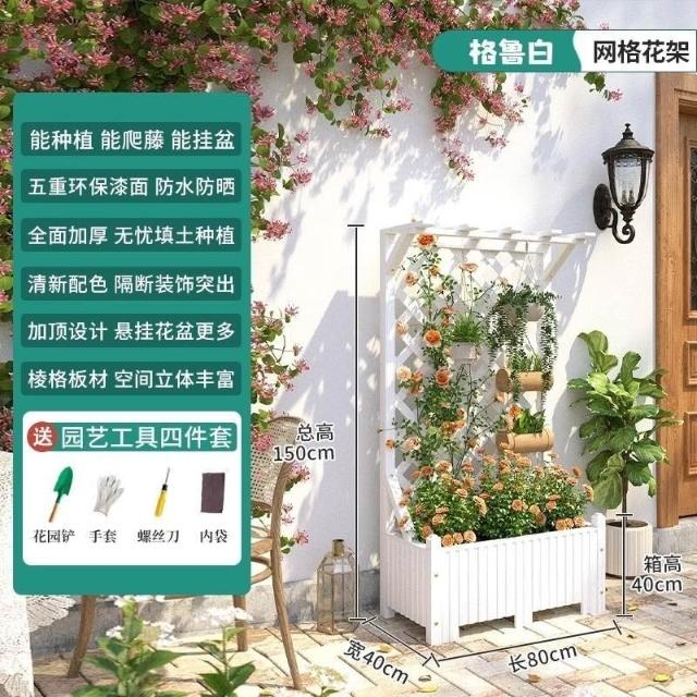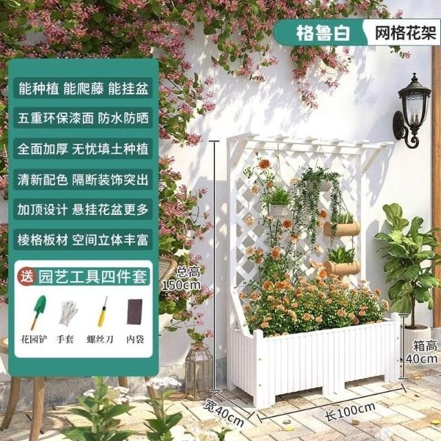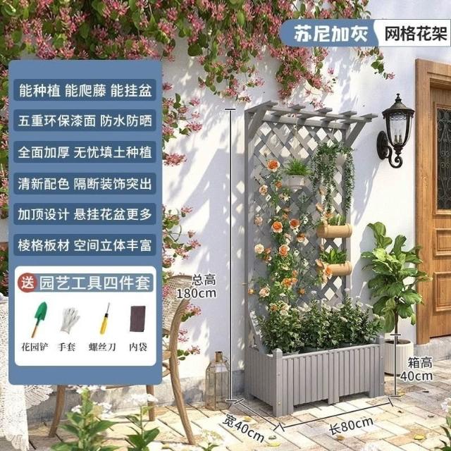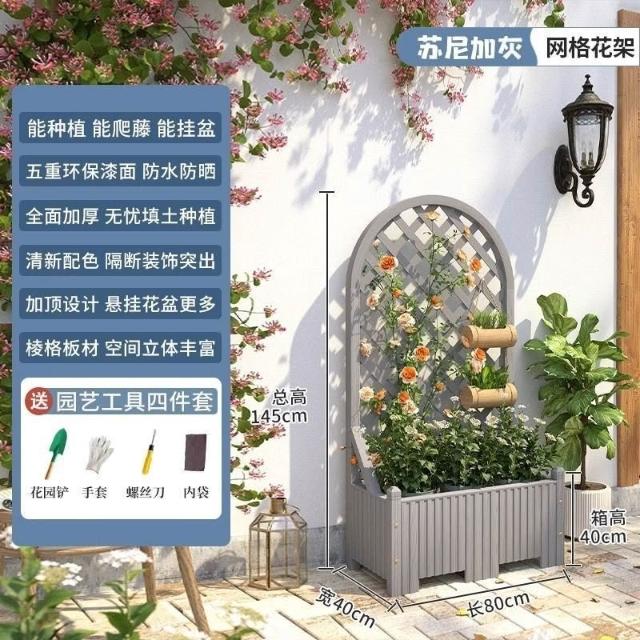 [新品免運]戶外庭院 防腐木 花架陽臺 落地網格 爬藤架 網紅裝飾室外 高端隔斷花箱