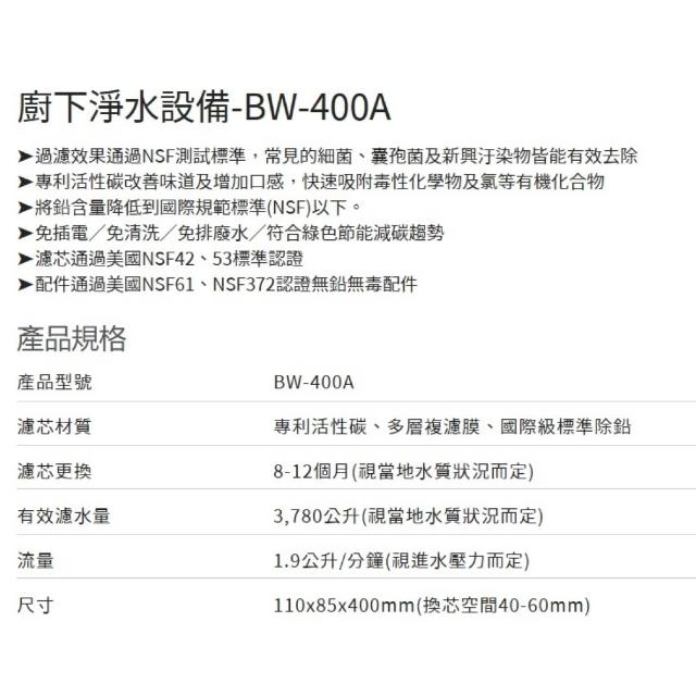 諾得淨水 BW400 除鉛型活性碳濾芯 (僅配送)|PENTAIR|降低鉛含量|NSF認證|濾心|