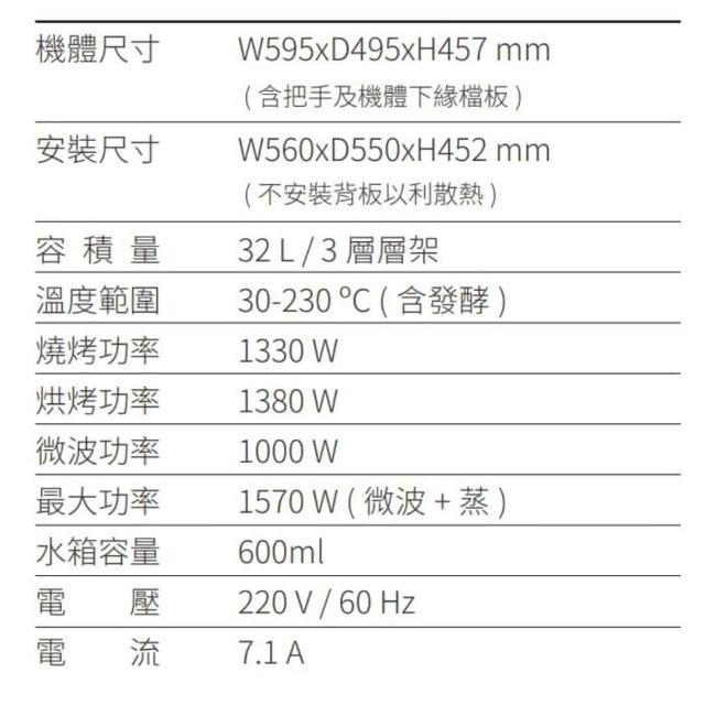 SVAGOVE8966 蒸烘烤變頻微波爐 32公升 220V 烤箱 蒸烤 崁入式 微波爐