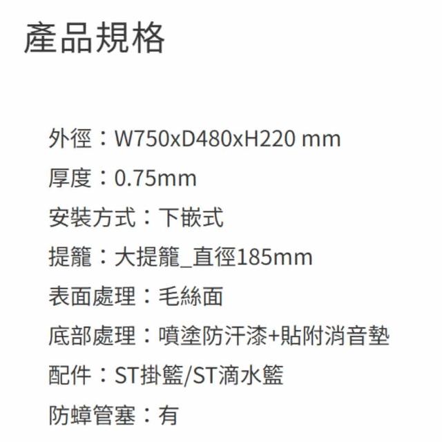 SVAGOVUS750 (75cm)、VUS850 (85cm) 下嵌式不鏽鋼水槽 下崁式 廚房水槽 僅配送