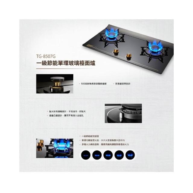 莊頭北TG-8507G 一級節能單環玻璃檯面爐 (含基本安裝)|黑玻|大焰火|鑄鐵爐架|一級能效|瓦斯爐|