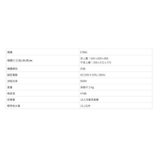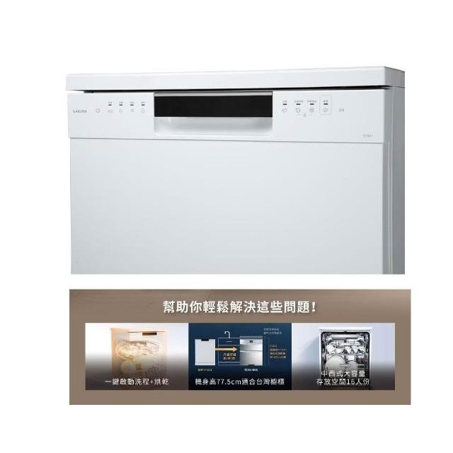 SAKURA 櫻花E7881 獨立式熱風烘乾洗碗機 (僅配送)|嵌入式|獨立式|16人份|9段洗程|熱風循環|需自備門板