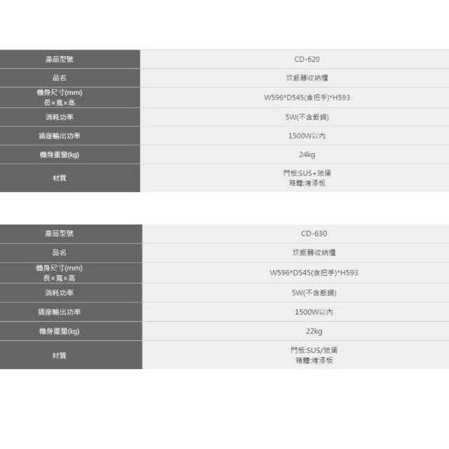 豪山CD-620 觸控式炊飯器收納櫃 (含基本安裝)|嵌入式|全開式|平拉式抽盤|橫流扇|延遲斷電|