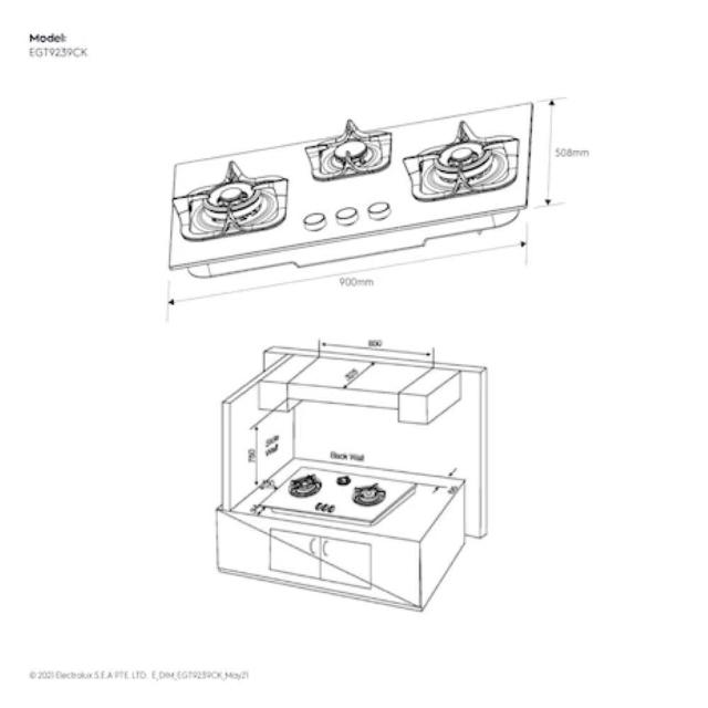 Electrolux 伊萊克斯EGT9239CK 嵌入式三口瓦斯爐|檯面爐|三口爐|90公分|入嵌式|鑄鐵爐架|安全熄火|