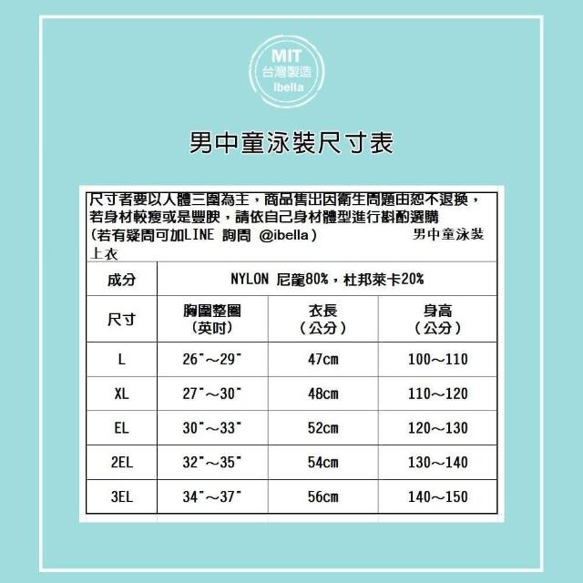 ibella 艾貝拉現貨加大男中童萊卡運動風立領長袖泳衣水母衣台灣製36-8H21602A-19只售上衣加大中童