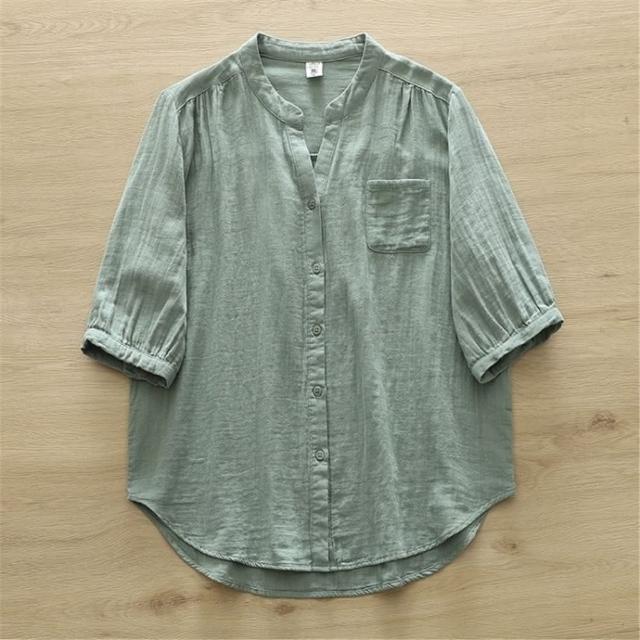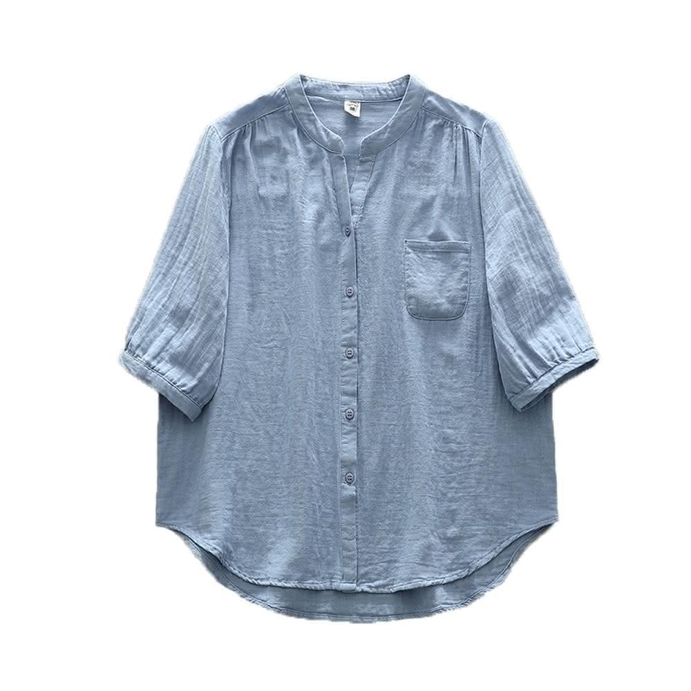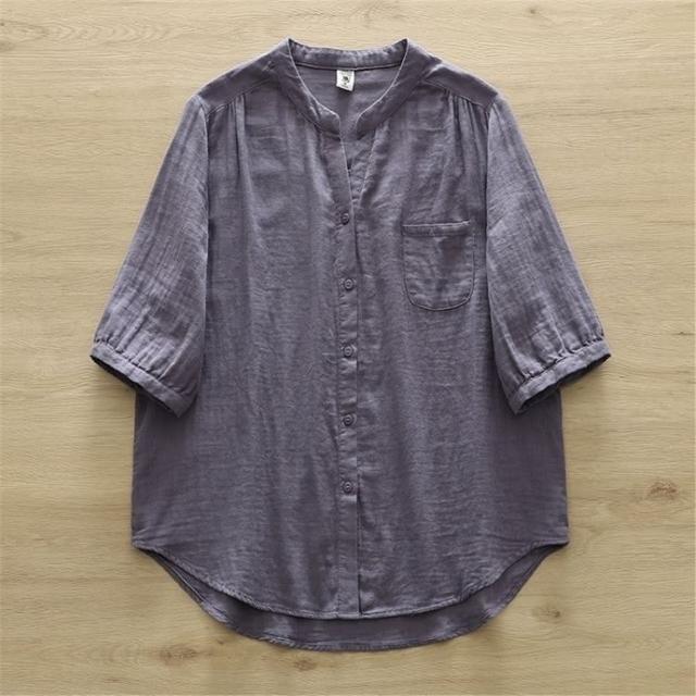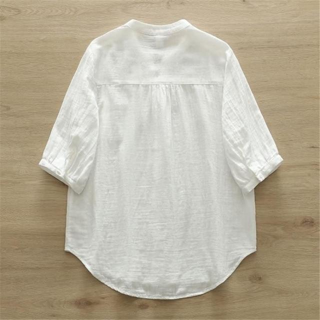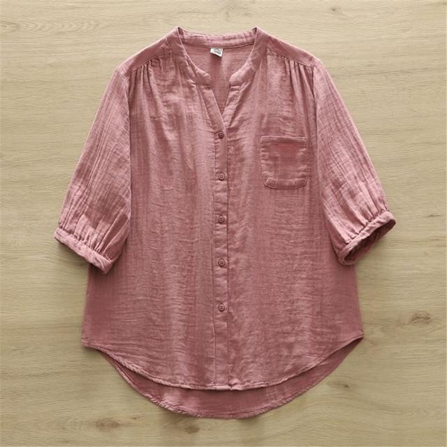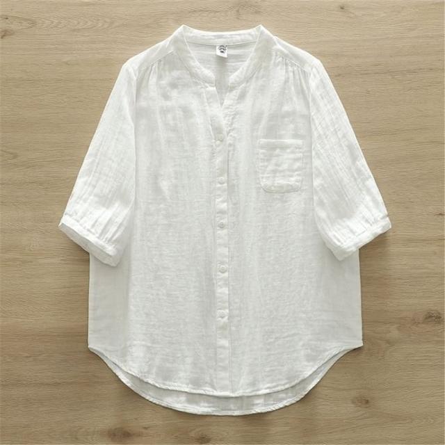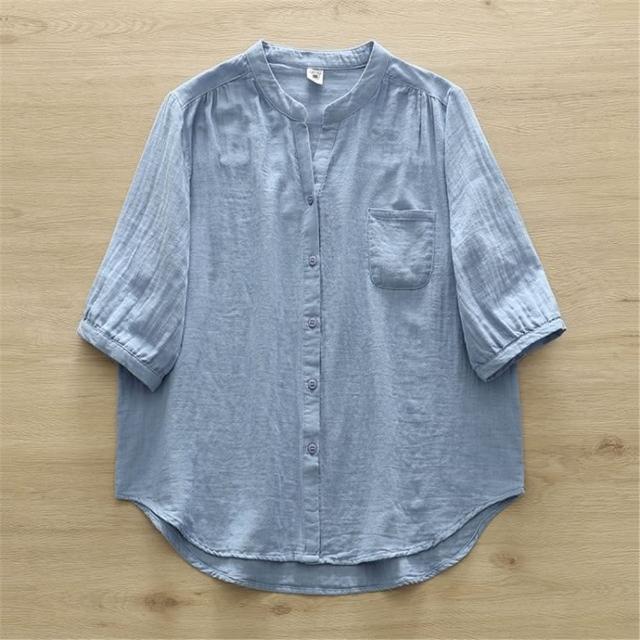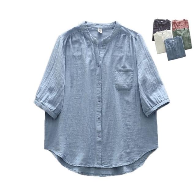 ibella 艾貝拉文青V領雙層棉紗襯衫短袖上衣55-12-850029-24M~L 尺碼