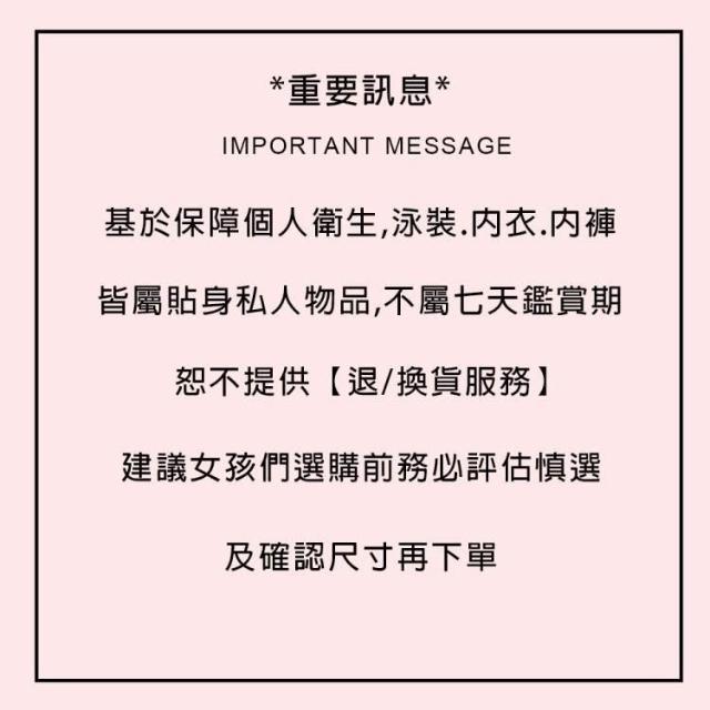 - 個人衛生用品除商品本身有瑕疵外,未拆封商品仍享有十天猶豫期之退貨權利。但已拆封 (如剪標、下水等情形…),依據《通訊交易解除權合理例外情事適用準則》第二條規定,商店無法接受退換貨。