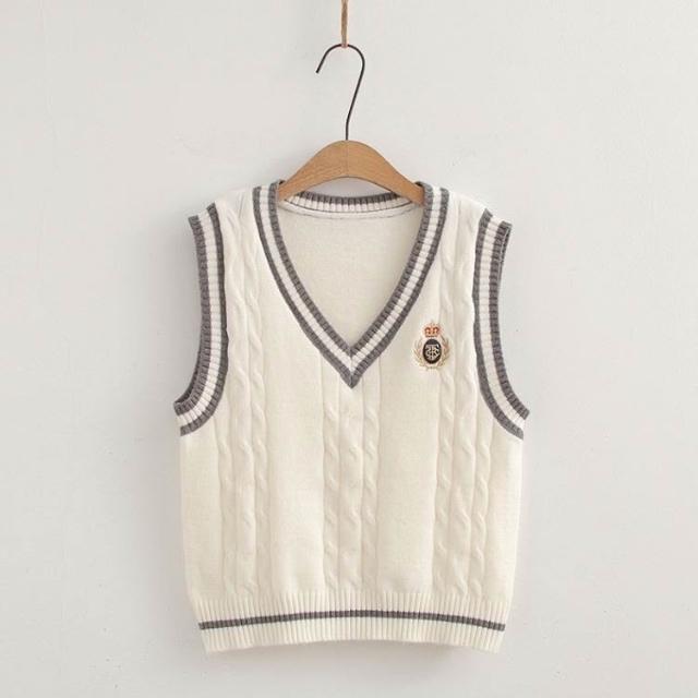 ibella 艾貝拉學院風徽章針織背心+襯衫+領帶三件套裝【55-24-858158-25】F 尺寸