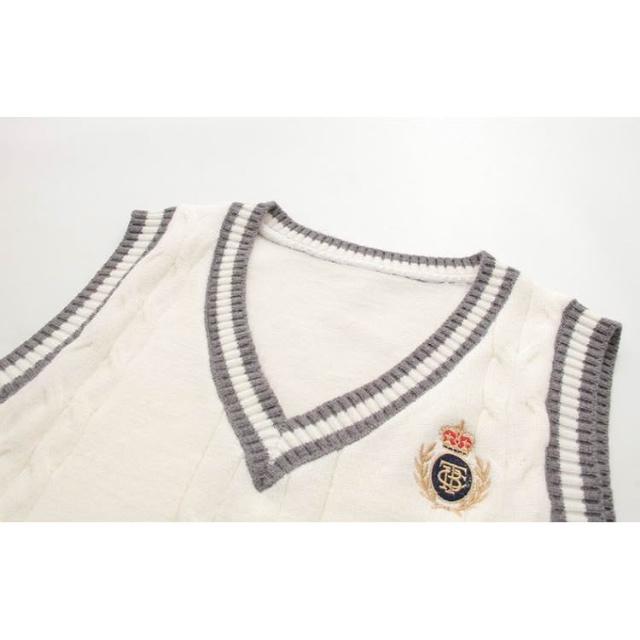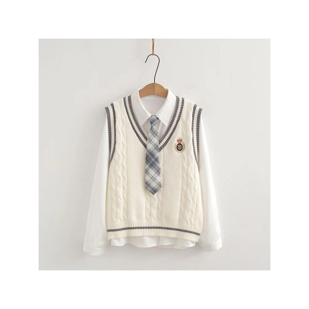 ibella 艾貝拉學院風徽章針織背心+襯衫+領帶三件套裝【55-24-858158-25】F 尺寸