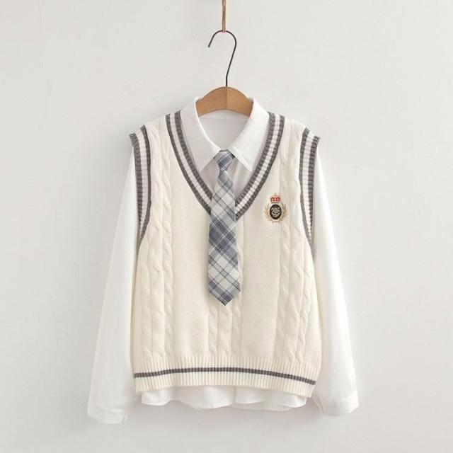 ibella 艾貝拉學院風徽章針織背心+襯衫+領帶三件套裝【55-24-858158-25】F 尺寸