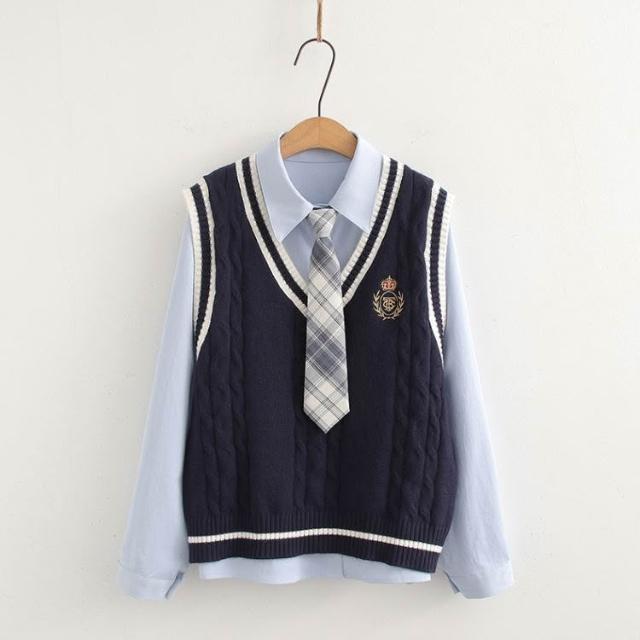 ibella 艾貝拉學院風徽章針織背心+襯衫+領帶三件套裝【55-24-858158-25】F 尺寸