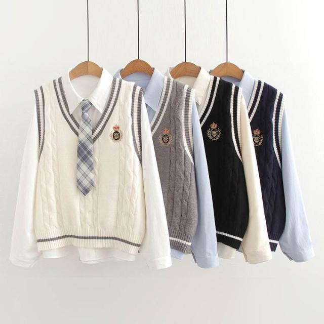 ibella 艾貝拉學院風徽章針織背心+襯衫+領帶三件套裝【55-24-858158-25】F 尺寸