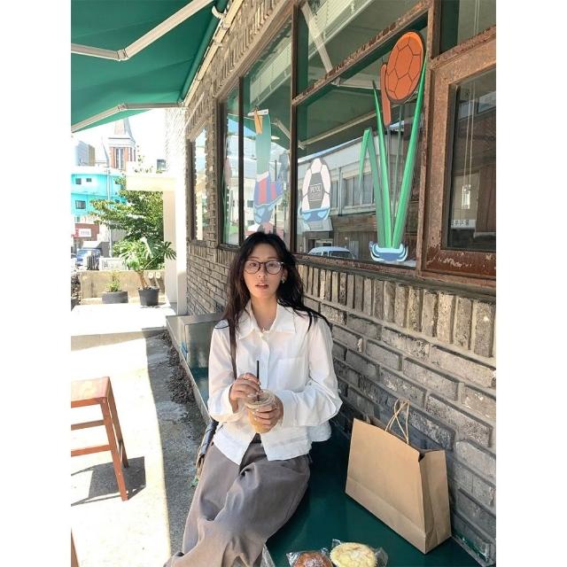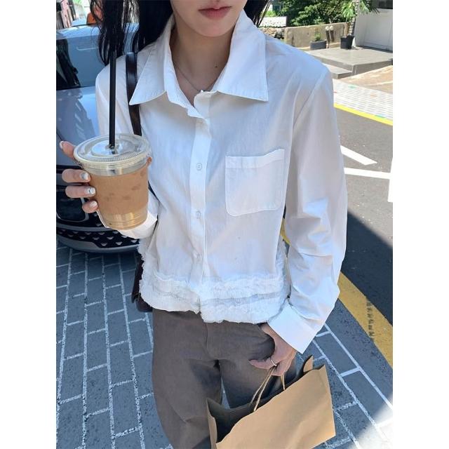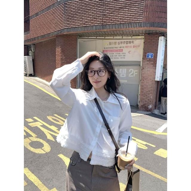 ibella 艾貝拉韓系荷葉下襬短版長袖襯衫上衣【29-22-8H1CA530827-25】F 尺碼