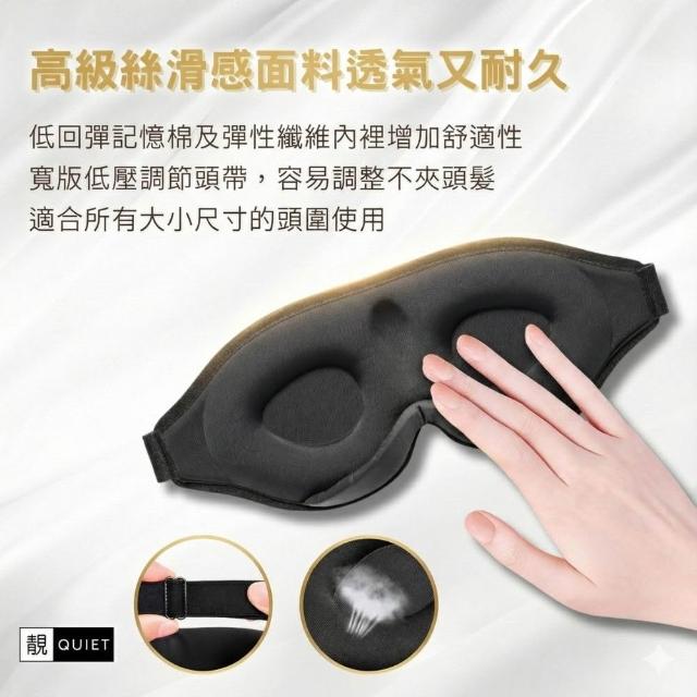 靚Quiet - 全黑翼 3D立體記憶棉眼罩 遮光眼罩 睡眠眼罩 | 午休 旅行 舒適 公司貨