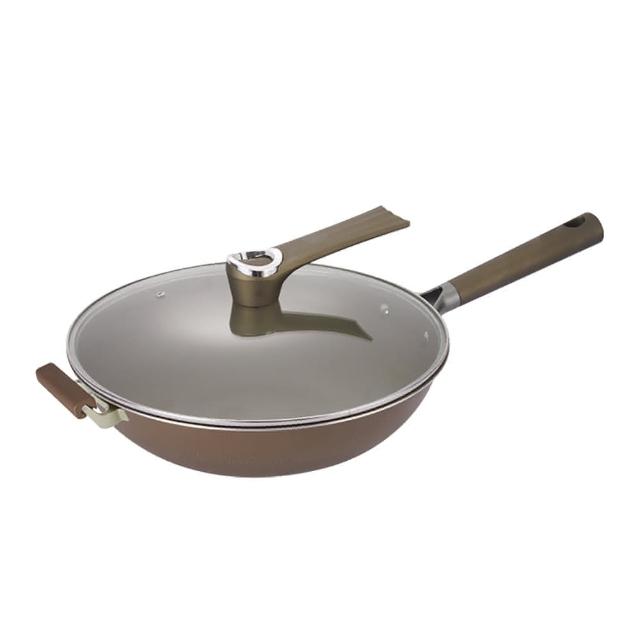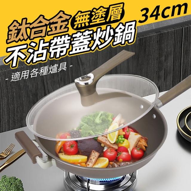 包姿婆鈦合金無塗層不沾帶蓋炒鍋34CM