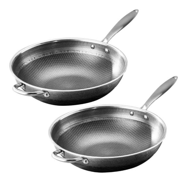 包姿婆316不鏽鋼雙面全屏蜂窩不沾炒鍋32cm