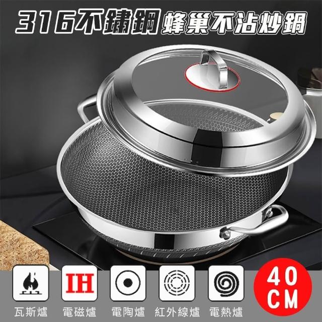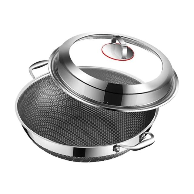 包姿婆加大加高316雙面蜂巢不沾炒鍋40cm