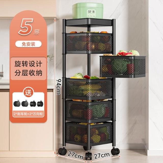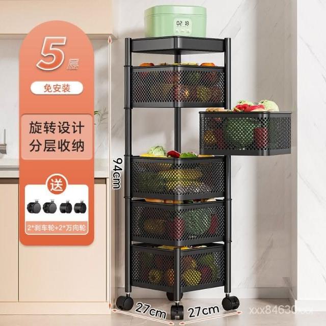 精品置物架 廚房旋轉多功能置物架家用落地多層零食小推車水果蔬菜籃子收納架 置物架