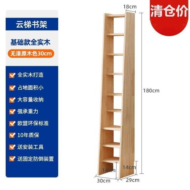高承重書架 置物架 傢逸全實木窄縫架落地靠墻書架梯形置物架收納架簡易學生組閤書櫃