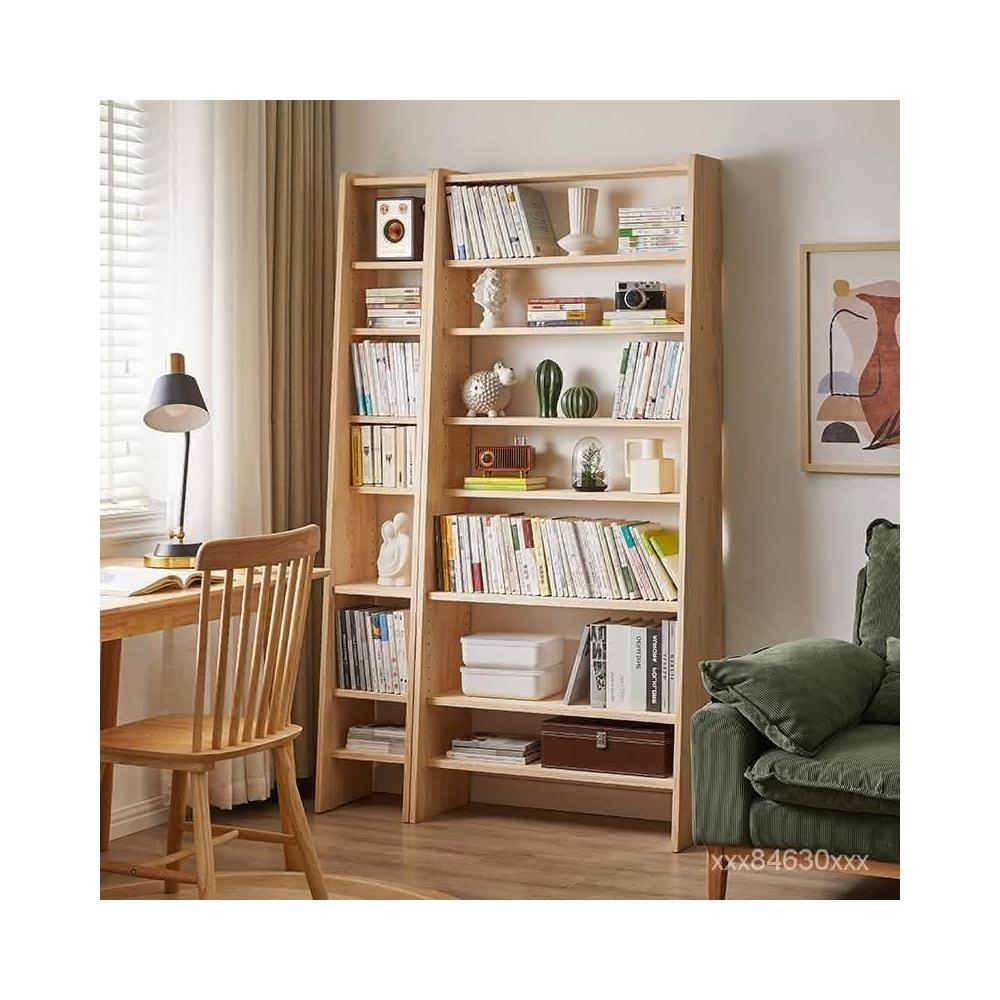 高承重書架 置物架 傢逸全實木窄縫架落地靠墻書架梯形置物架收納架簡易學生組閤書櫃