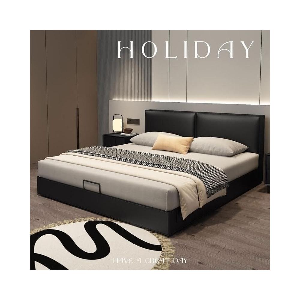 免稅免運 奶油風意式床架 極簡黑色真皮床 豆腐塊雙人床 臥室雙人床 婚床 現代簡約輕奢軟包床