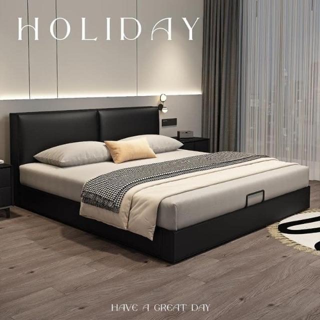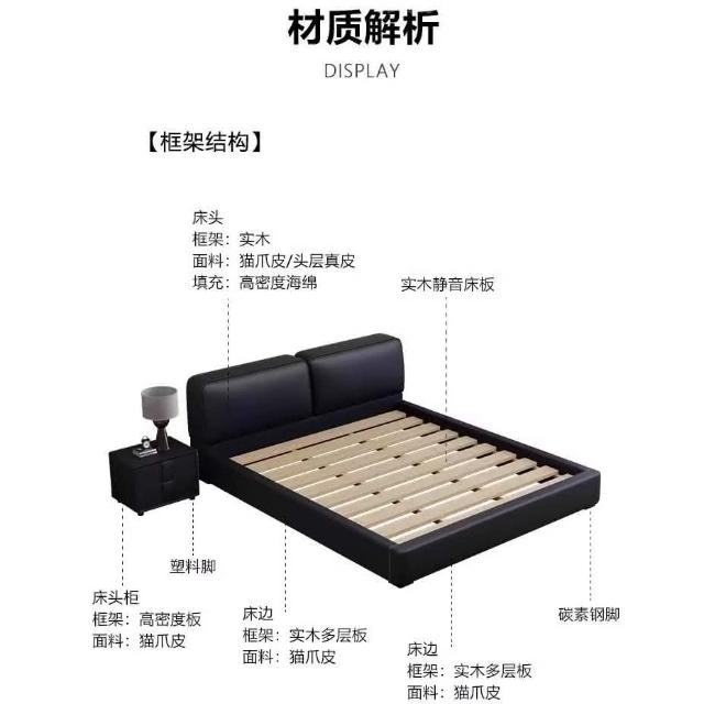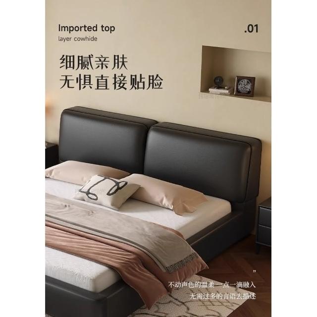 免稅免運 奶油風意式床架 極簡黑色真皮床 豆腐塊雙人床 臥室雙人床 婚床 現代簡約輕奢軟包床