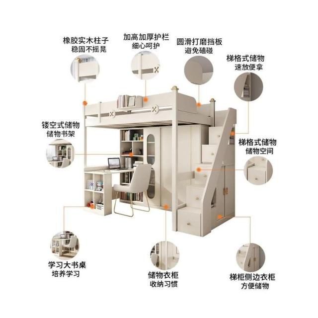 實木高承重 安裝服務 實木床實木上床下桌高低床多功能組閤床上下床雙層床書桌床一體式兒童床實木上下床