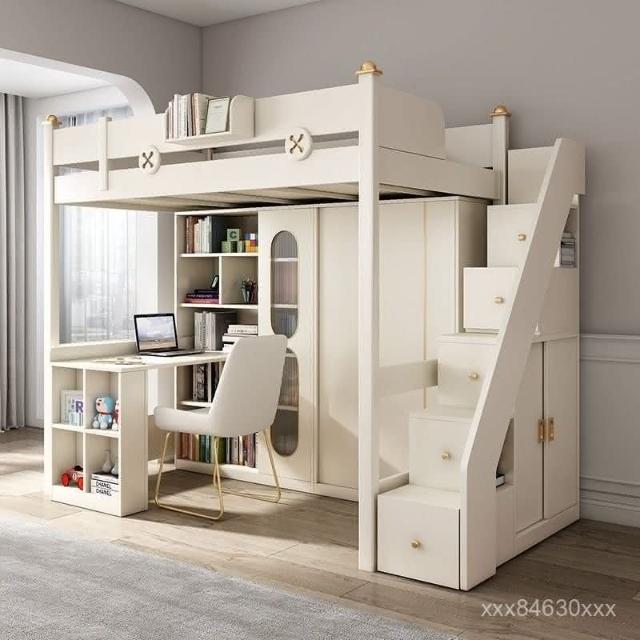 實木高承重 安裝服務 實木床實木上床下桌高低床多功能組閤床上下床雙層床書桌床一體式兒童床實木上下床