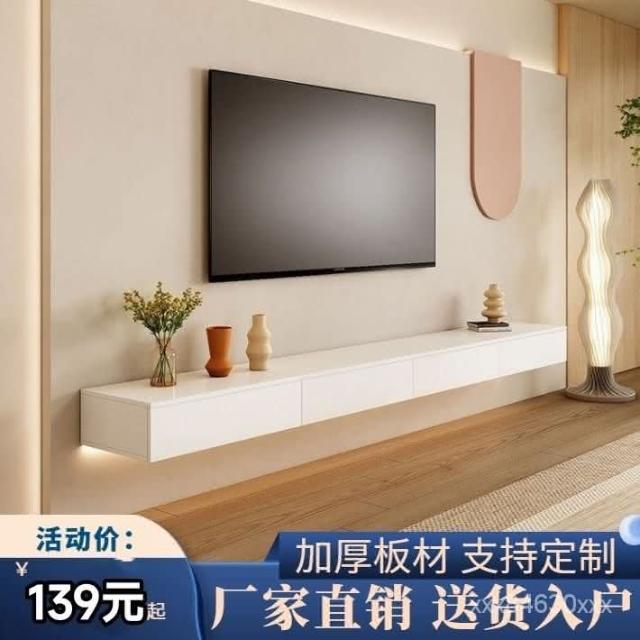 高承重懸掛 現代簡約懸空電視櫃懸掛式懸浮電視墻櫃小戶型客廳奶油風組閤茶幾