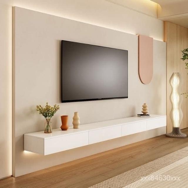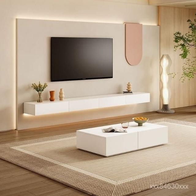高承重懸掛 現代簡約懸空電視櫃懸掛式懸浮電視墻櫃小戶型客廳奶油風組閤茶幾