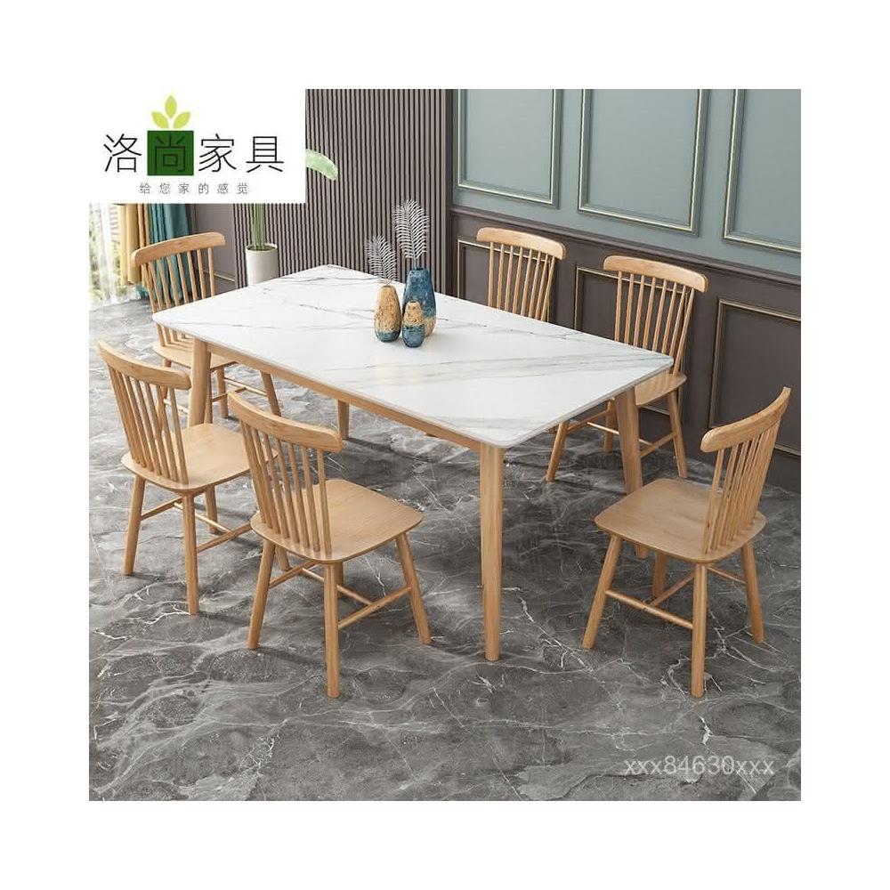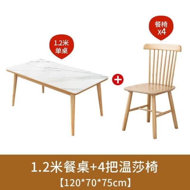 高質量家庭餐桌 免運 實木餐桌家用小戶型現代簡約北歐原木色長方形輕奢巖闆餐桌椅組閤