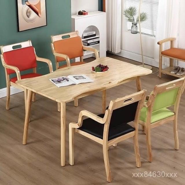 實木椅子 免運下殺 適老化家具餐椅養老院桌椅實木餐椅家用適老化餐椅帶扶手椅子