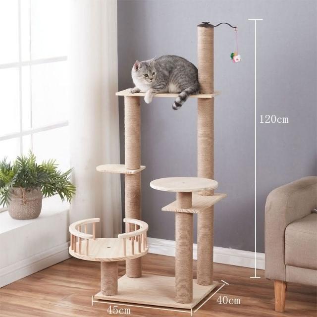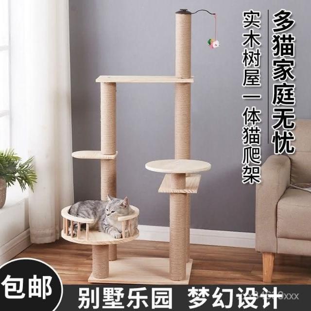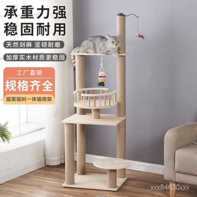 超結實貓爬架 實木貓爬架太空艙劍麻貓窩多層貓房子貓樹貓抓闆柱貓跳臺一茗之體 貓爬架