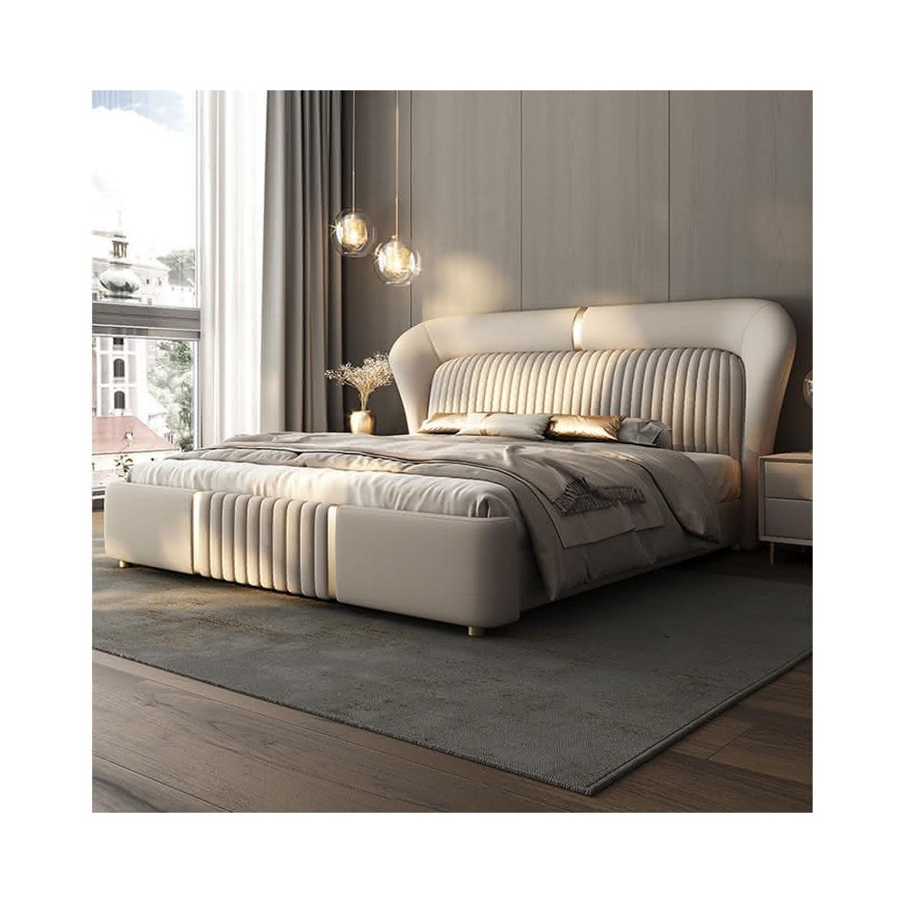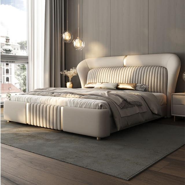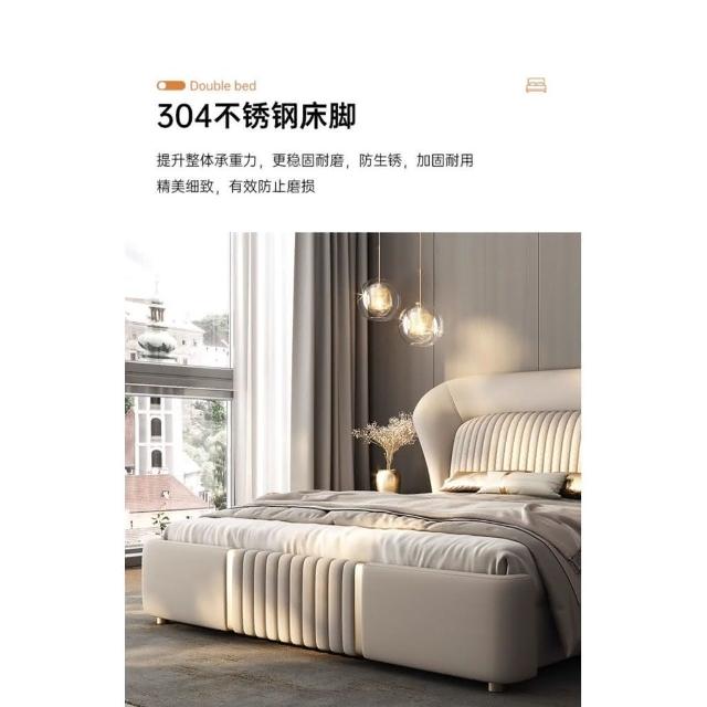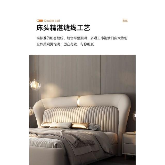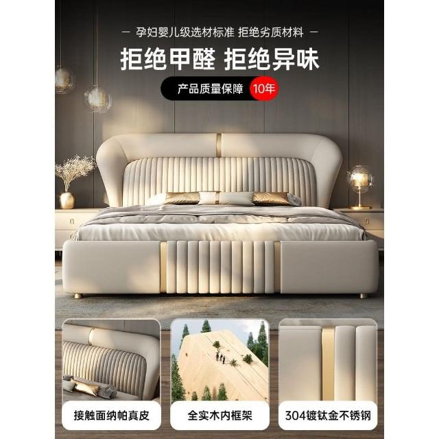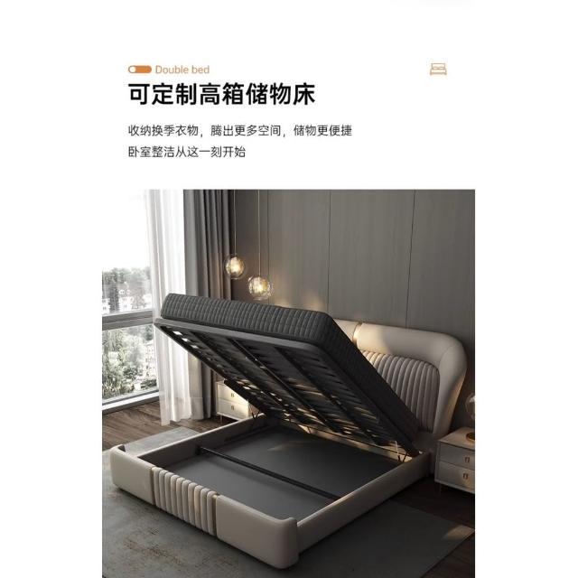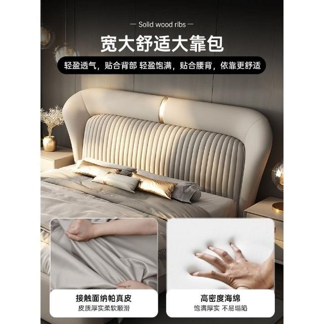 免運費/免關稅 現代簡約真皮床 輕奢軟包皮床 主臥雙人大床 標準雙人床 婚床 軟包儲物床 床組床架 雙人實木床 掀床