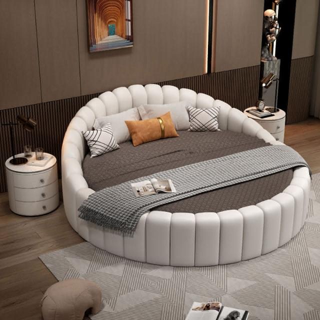 免運費/免關稅 現代簡約圓床雙人床 圓形床 真皮公主床 小戶型圓形床 酒店圓床 實木軟包床 雙人大床 金剛皮床 床架