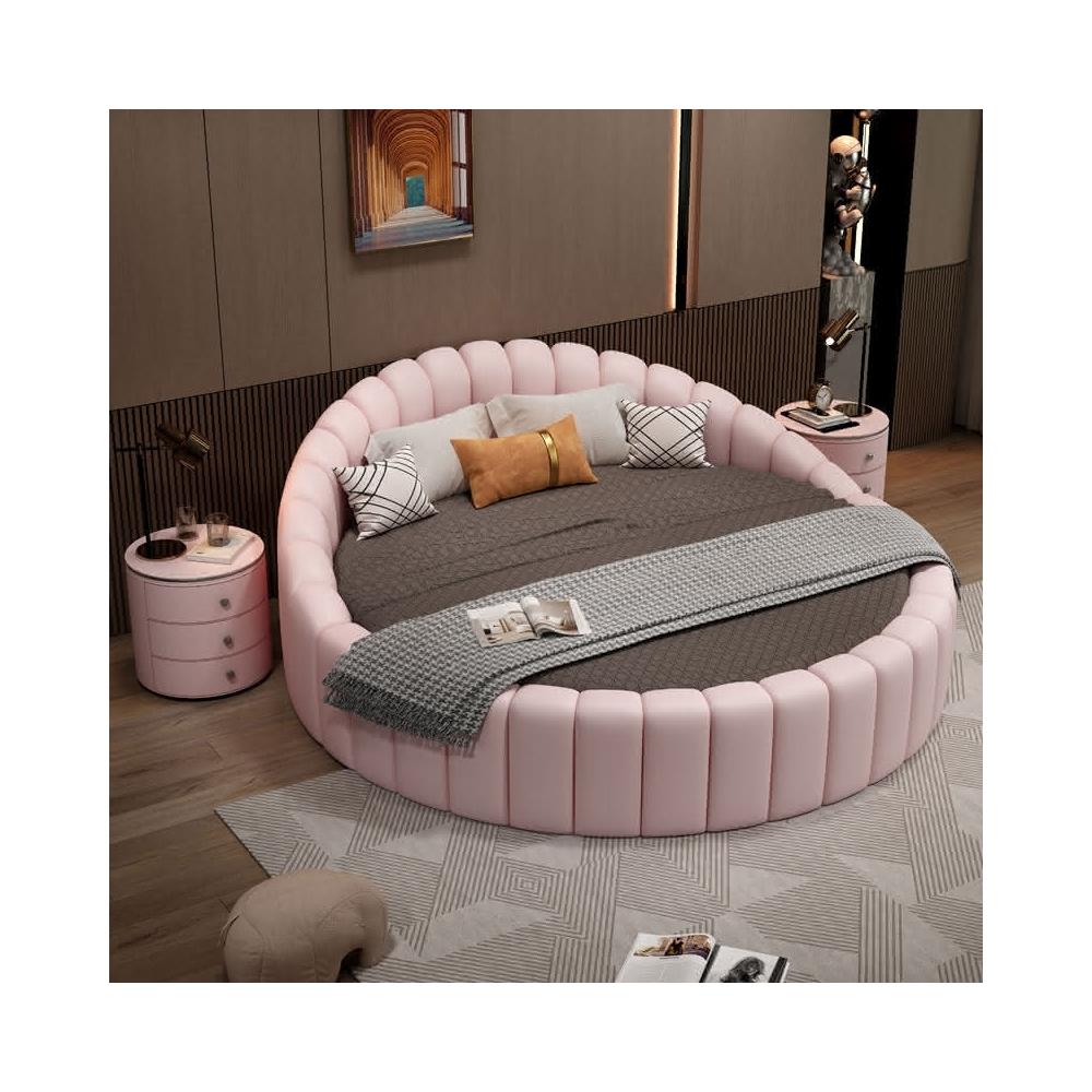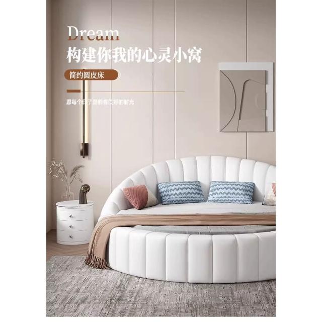 免運費/免關稅 現代簡約圓床雙人床 圓形床 真皮公主床 小戶型圓形床 酒店圓床 實木軟包床 雙人大床 金剛皮床 床架