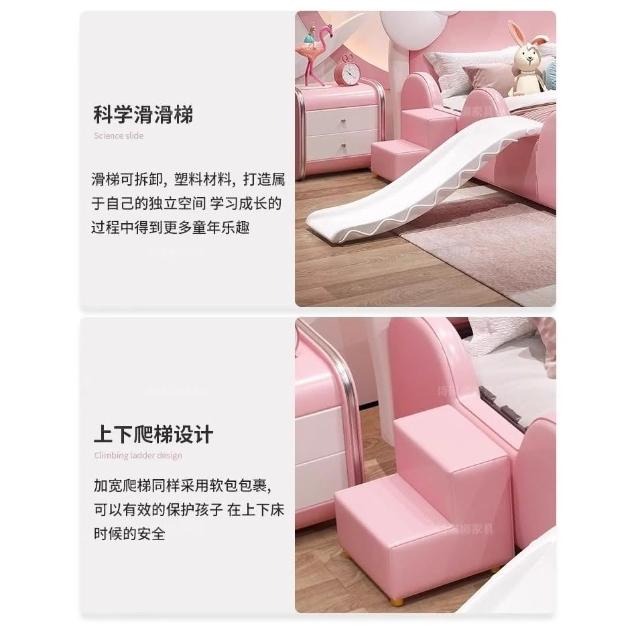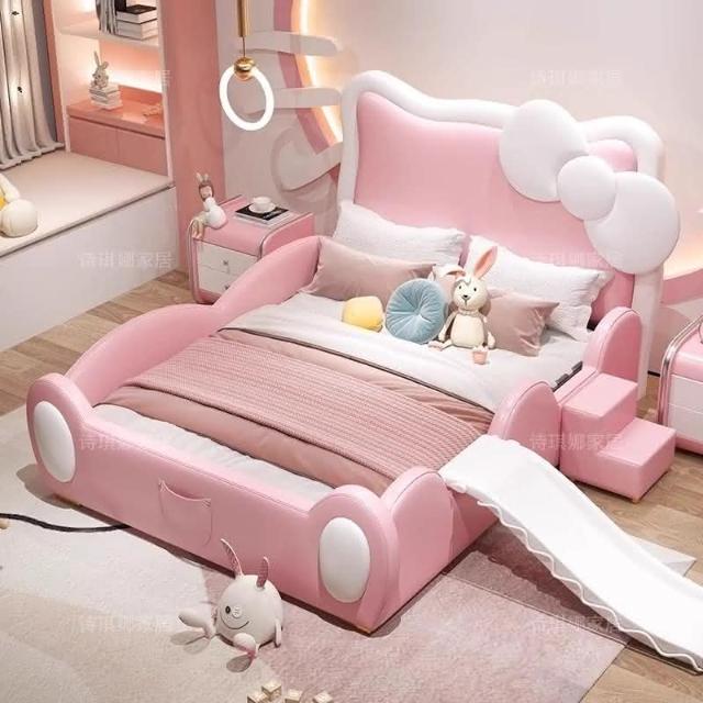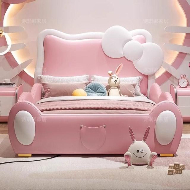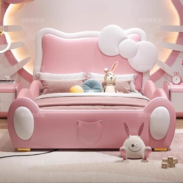 免運費/免關稅 卡通粉色兒童床 公主床 生態皮軟包床 兒童儲物床 家用臥室小孩床 床組床架 掀床 實木兒童床 大床