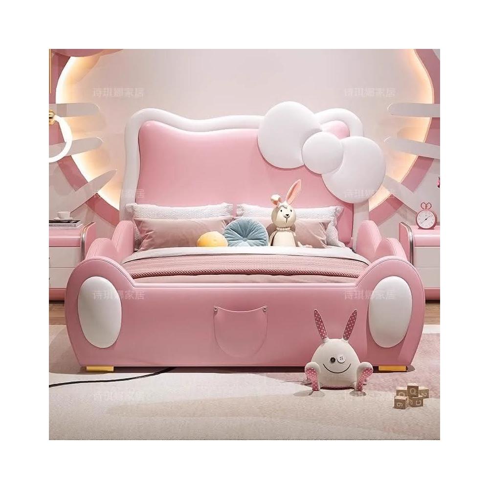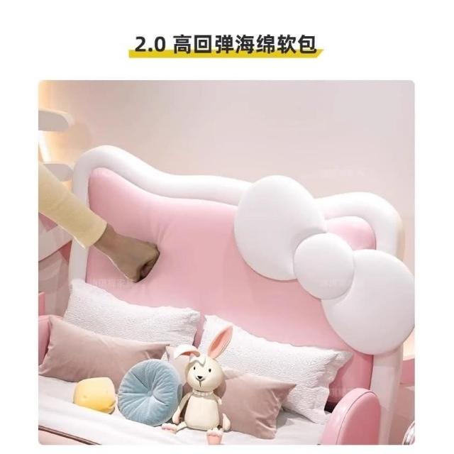 免運費/免關稅 卡通粉色兒童床 公主床 生態皮軟包床 兒童儲物床 家用臥室小孩床 床組床架 掀床 實木兒童床 大床
