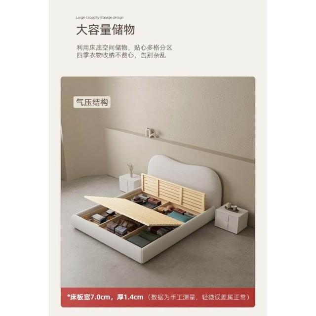 免運費/免關稅 新款泰迪絨床 軟包布藝床 主臥室雙人床 奶油風布藝床 標準雙人床 床組床架 掀床 儲物床 實木雙人床