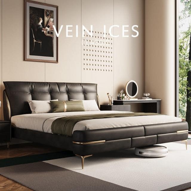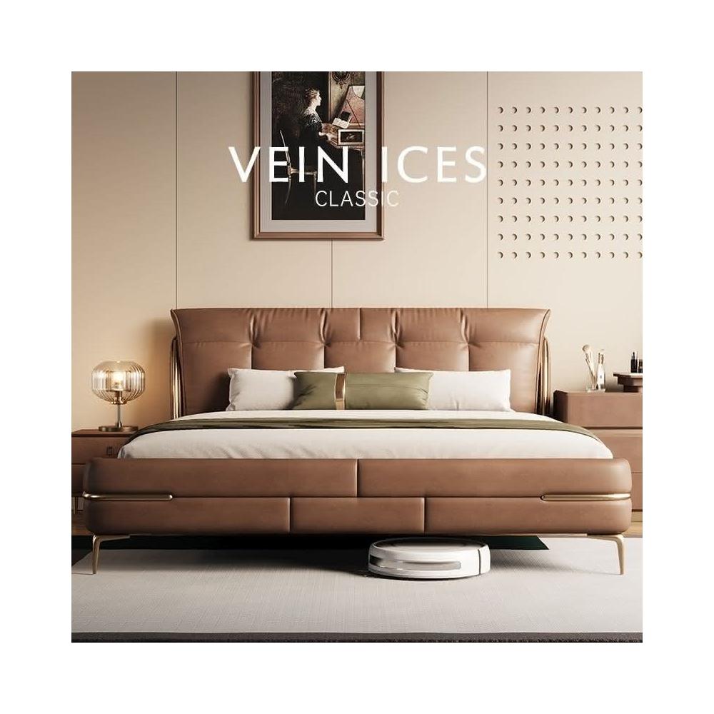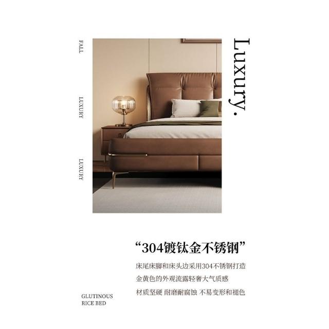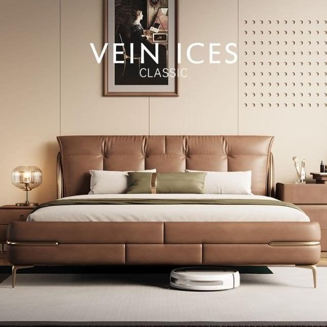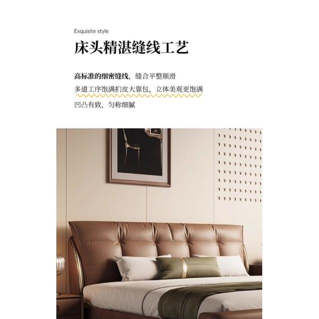 免運費/免關稅 新款輕奢真皮床 意式皮藝床 豪華軟包實木床 標準雙人床 床組床架 主臥婚床 掀床 儲物床 皮藝雙人床