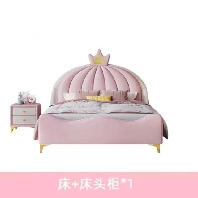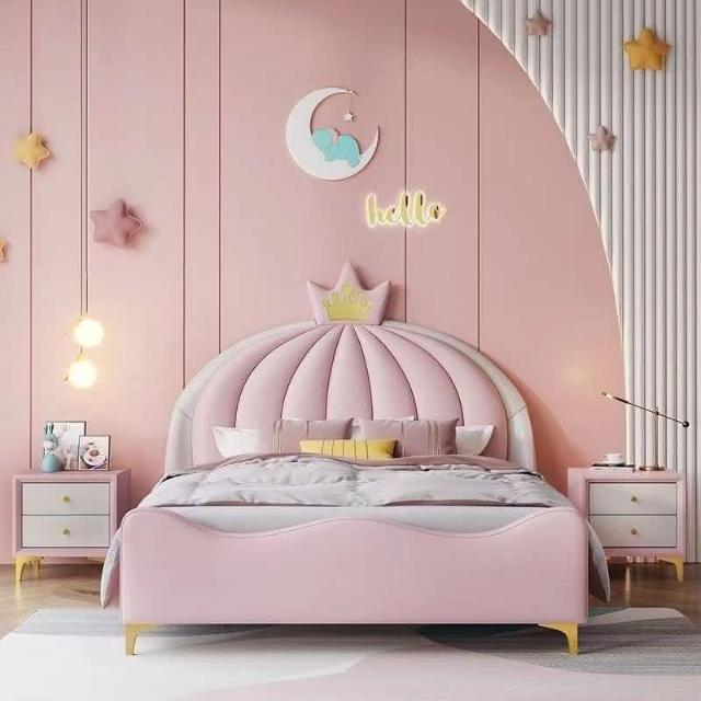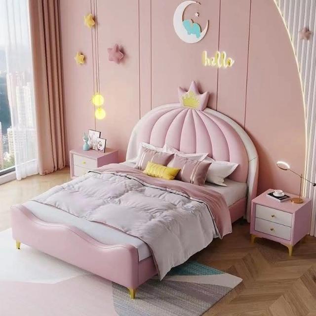 免運費/免關稅 北歐輕奢風 兒童公主床 女孩單床 皇冠粉色床架 臥室實木軟體床 兒童床 掀床 床架床組 儲物床架