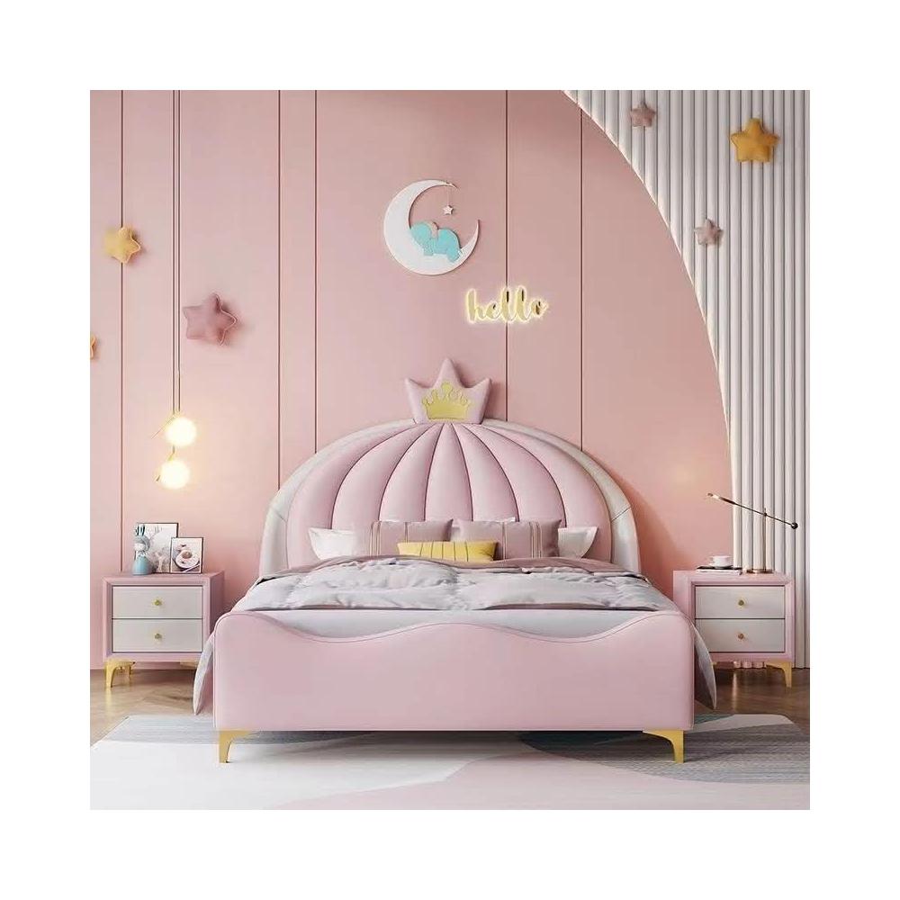免運費/免關稅 北歐輕奢風 兒童公主床 女孩單床 皇冠粉色床架 臥室實木軟體床 兒童床 掀床 床架床組 儲物床架