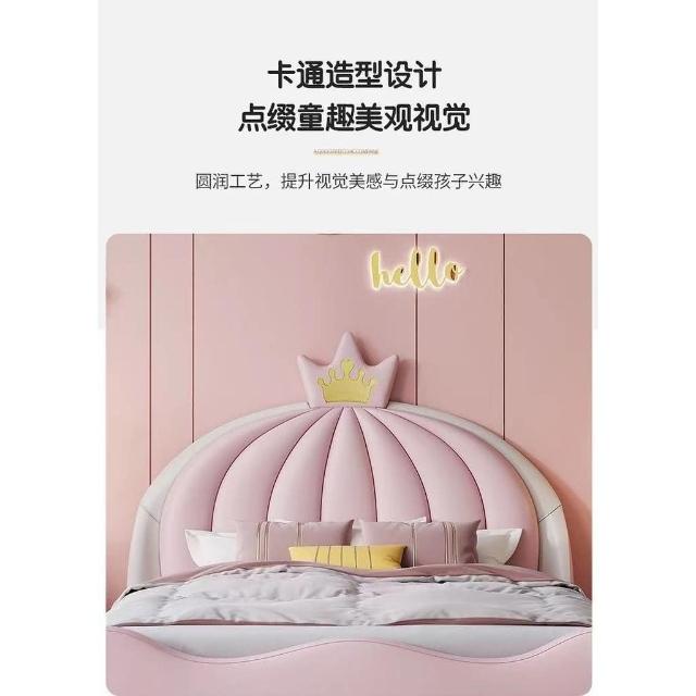 免運費/免關稅 北歐輕奢風 兒童公主床 女孩單床 皇冠粉色床架 臥室實木軟體床 兒童床 掀床 床架床組 儲物床架