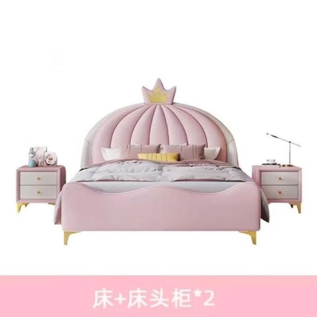 免運費/免關稅 北歐輕奢風 兒童公主床 女孩單床 皇冠粉色床架 臥室實木軟體床 兒童床 掀床 床架床組 儲物床架
