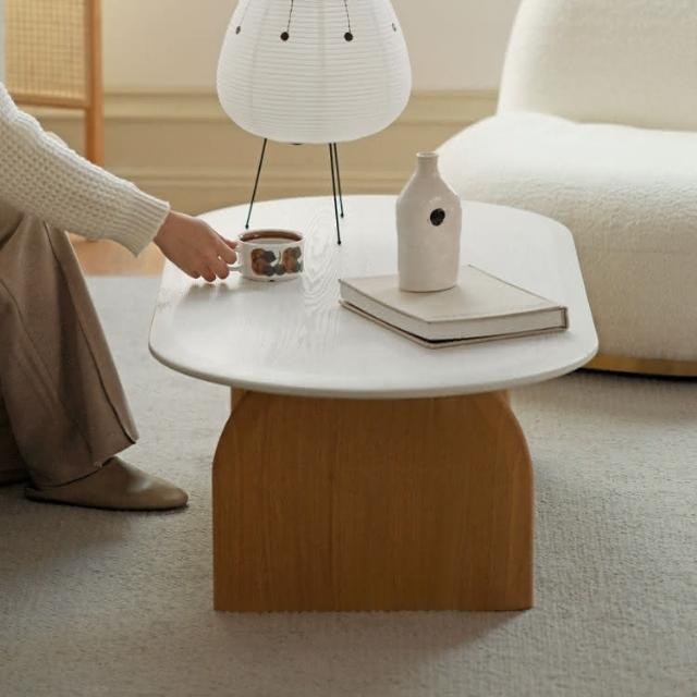 現貨 實木茶几 現代簡約客廳家用茶桌 侘寂風邊桌 法式極簡白色小桌子 家用客廳茶几桌