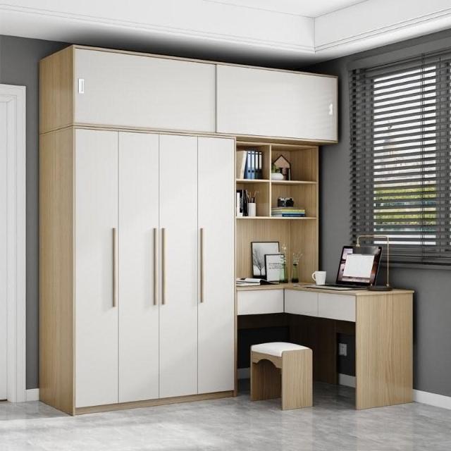 免運費/免關稅 簡約衣櫃 衣櫃臺式桌連身 L型轉角書桌衣櫃組合 家用臥室衣櫃 收納櫃 儲物衣櫃 櫃子 大衣櫃 多層收納